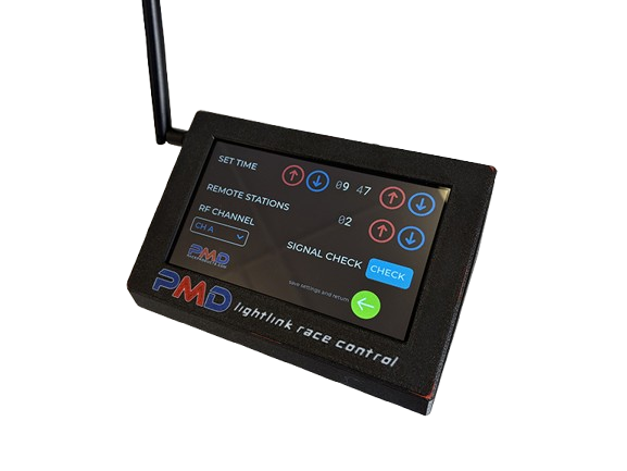 Featuring a compact 7” colour touch screen, the system allows officials to instantly transmit RF control signals to remote lighting stations positioned around the race circuit.